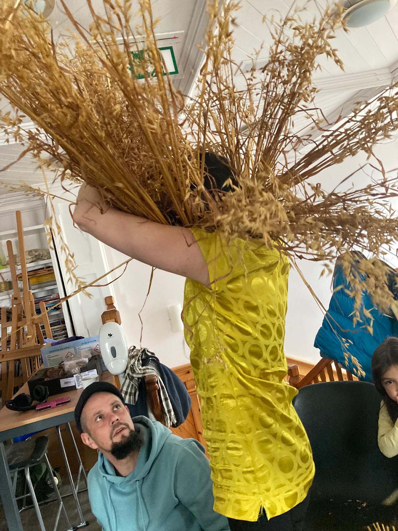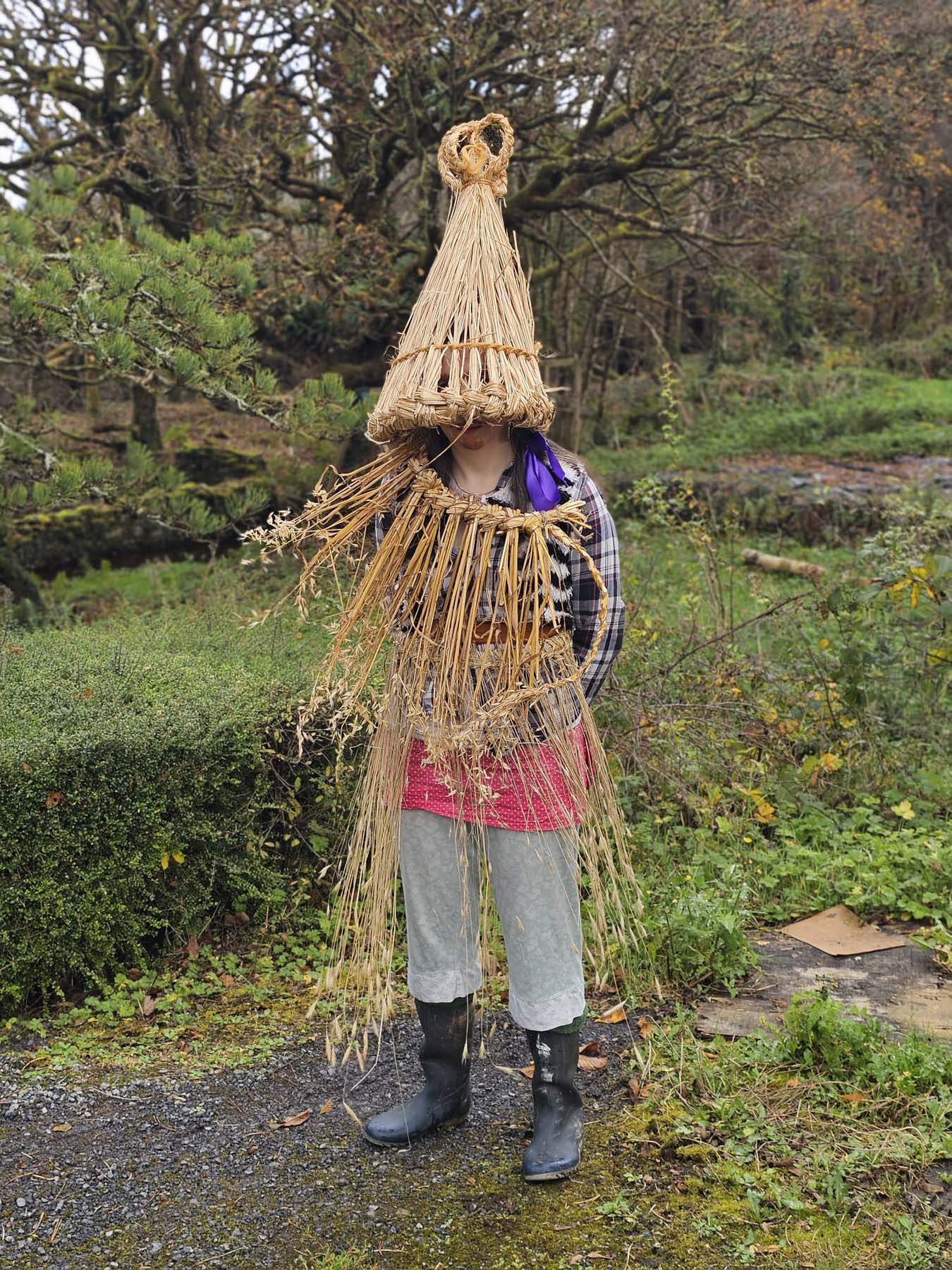 Bacach, is a living, evolving project that weaves together strawing traditions, horticulture, collective memory and folklore. Beginning in the field, seed sown is cut by scythes, winnowed and gathered and crafted in hands to later unfold through costume and acts of disguise, dance, and celebration. At its heart lies an exploration of how land is both poetic and political, how it lives through us as material, gesture, and lore.