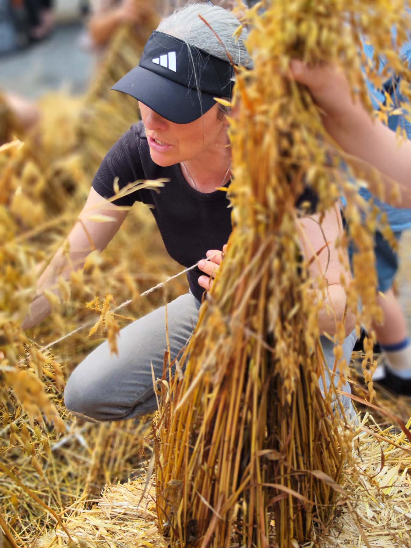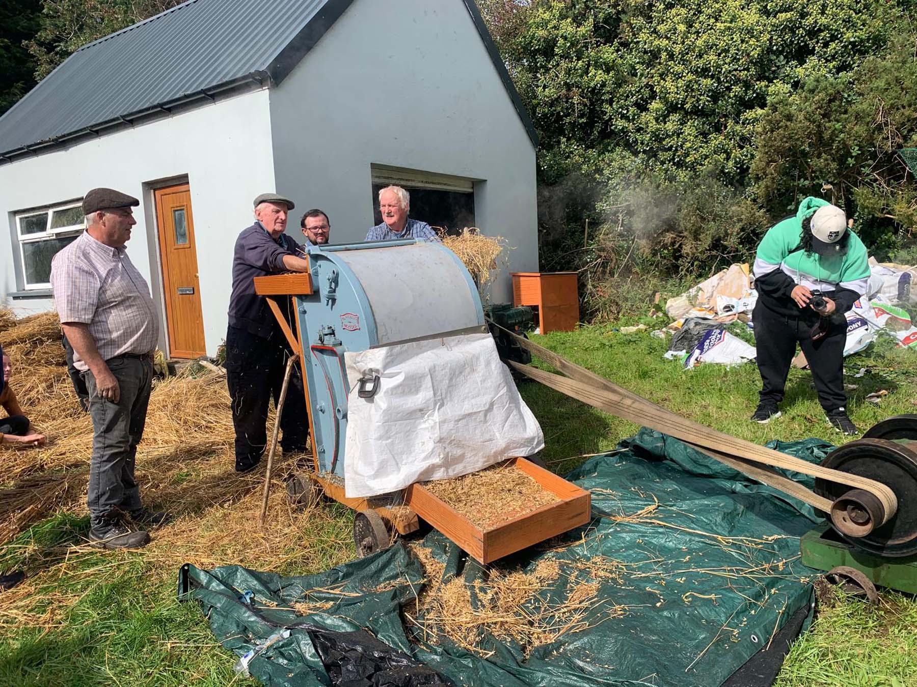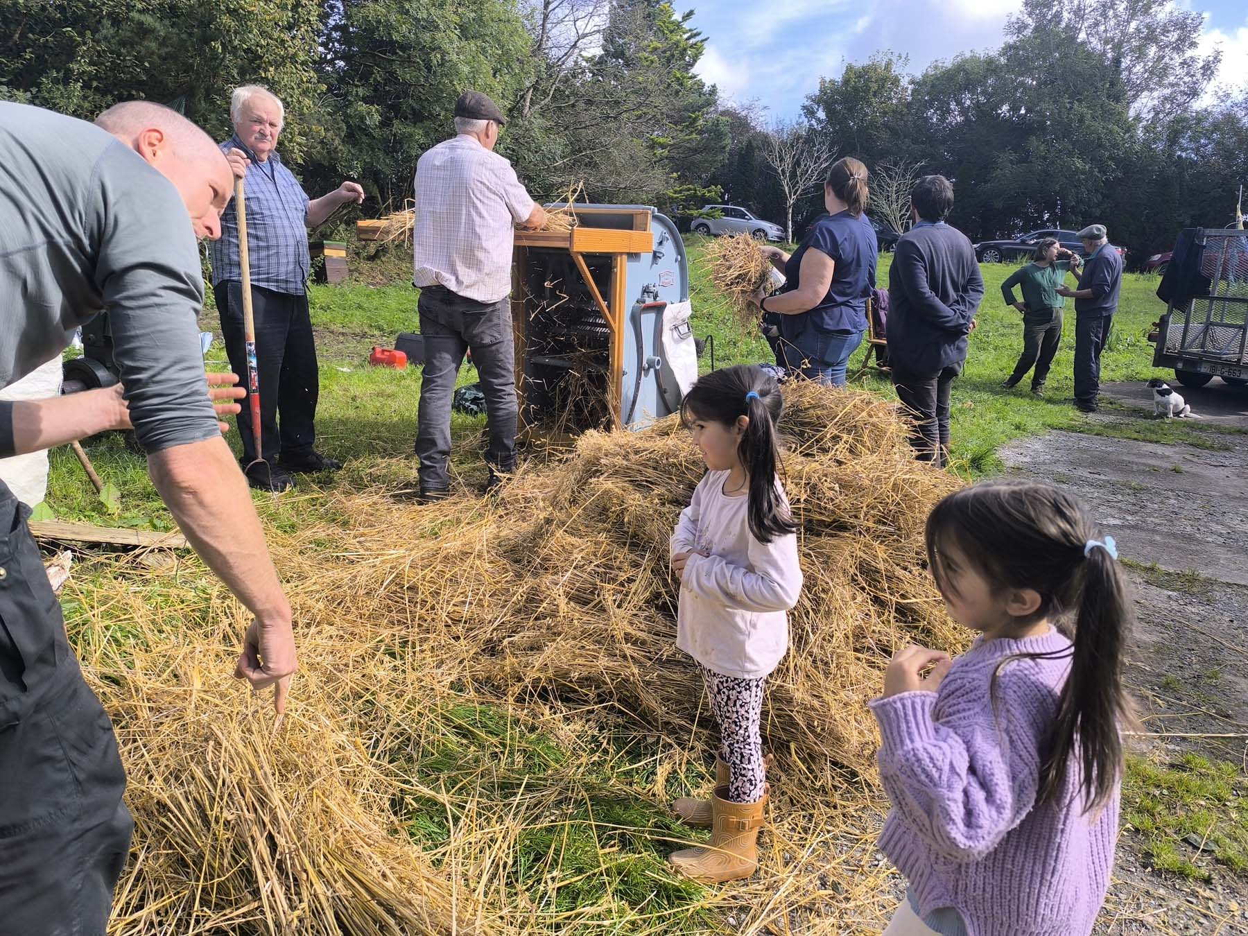 Through touch, smell, movement, and the labour of collective making, participants reconnect to land. Bacach is a practice of sensing that tunes the body to cycles of growth, harvest, and celebration. Working alongside neighbours and the Down to Earth Collective, communities sow, thresh, and winnow oats, this year adding rye and barley too. Other cereals are sought from, Tipperary and Wexford (giving the chaff a use). Acts of cultivation have a choreography: the rustle of straw, the rhythm of hands, the quiet politics of people coming together to grow what they or others will later wear, dance and consume.