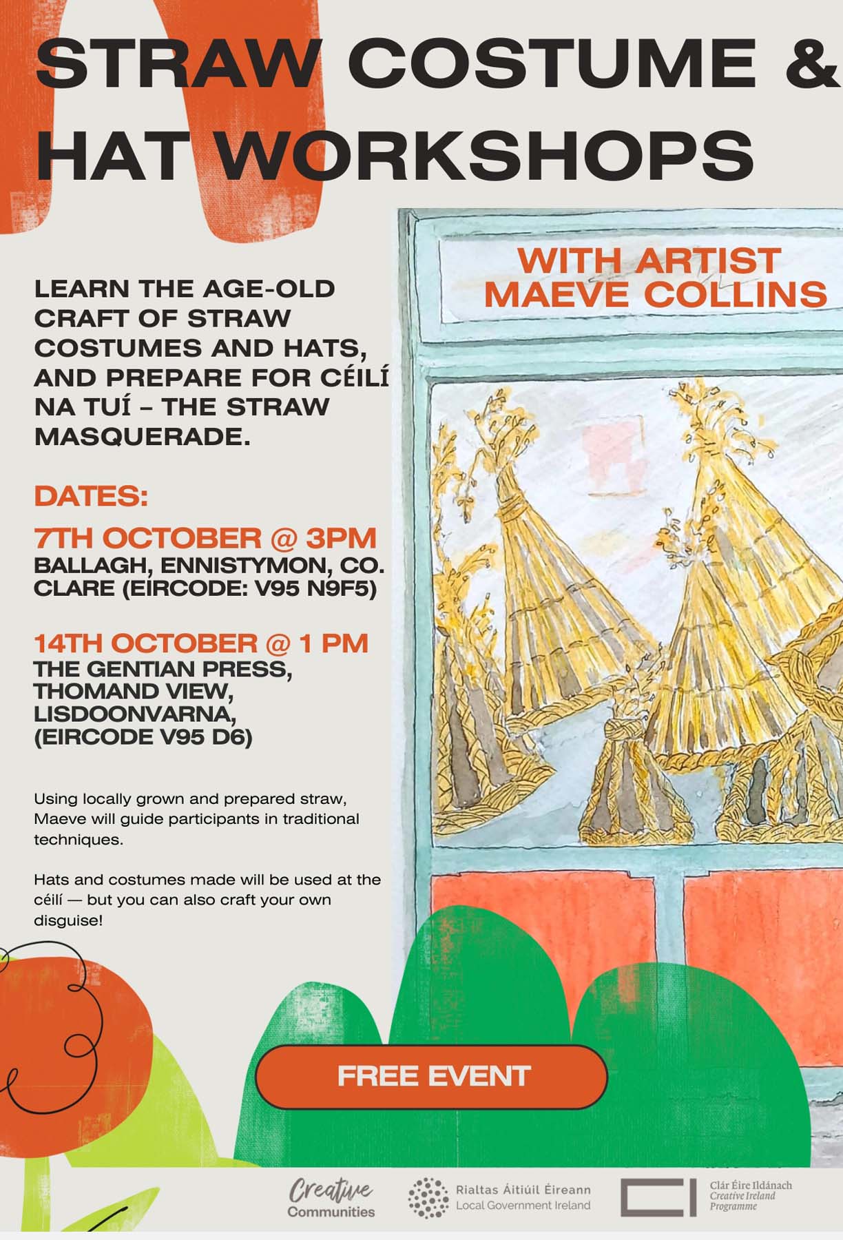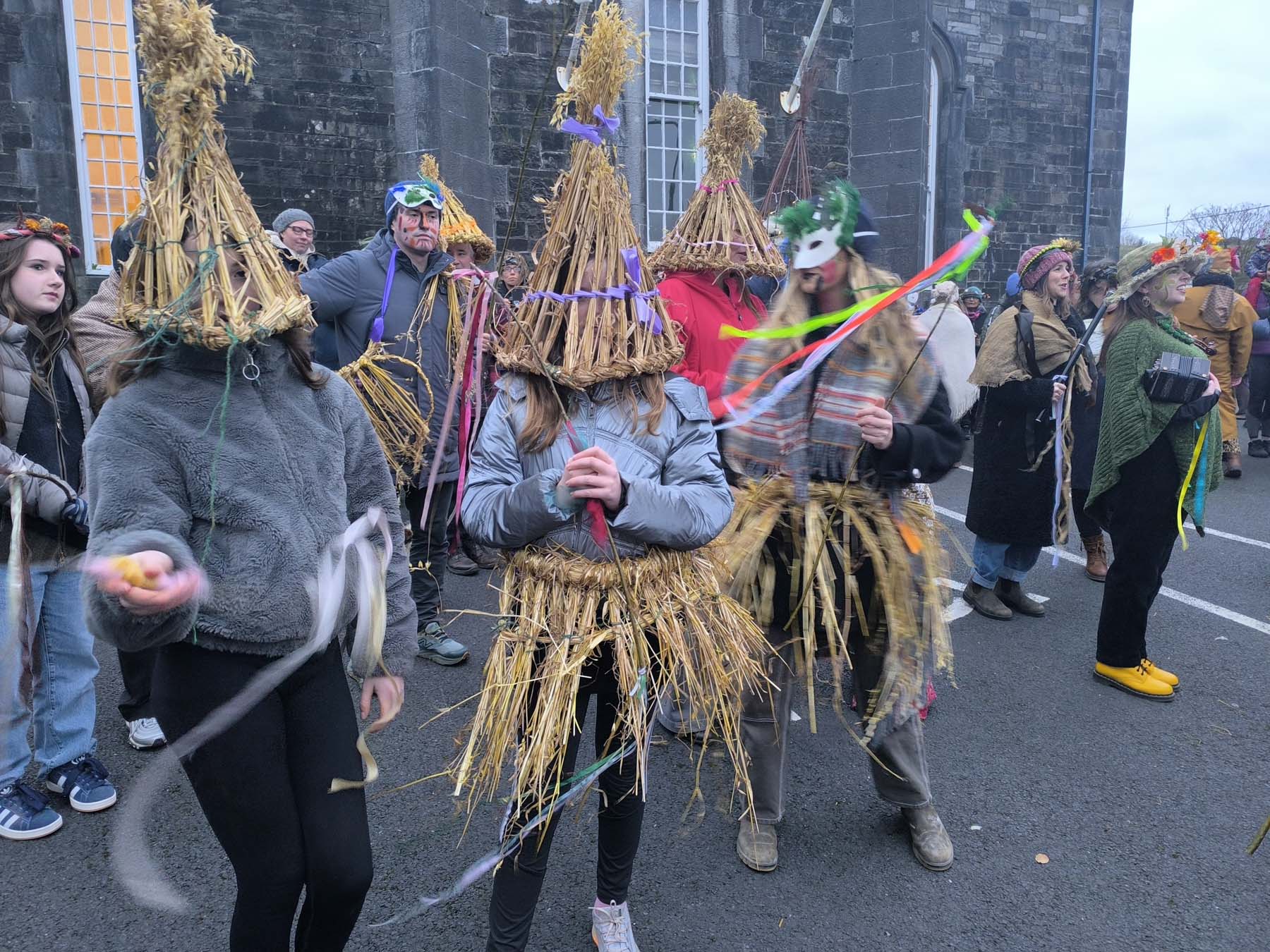 Over time, the project has taken on a life of its own sustained by many hands and voices. It continues to gather new strands: Straw dances, preparations for Brigid’s Day festivals, a collaboration with ‘her story’ with a forest school and a rain forest community in Indonesia, workshops for straw/ bacadh groups, straw connect project with European cultures, collaborations with dancers, musicians, schools and community groups and new gatherings where straw is a language of connection.