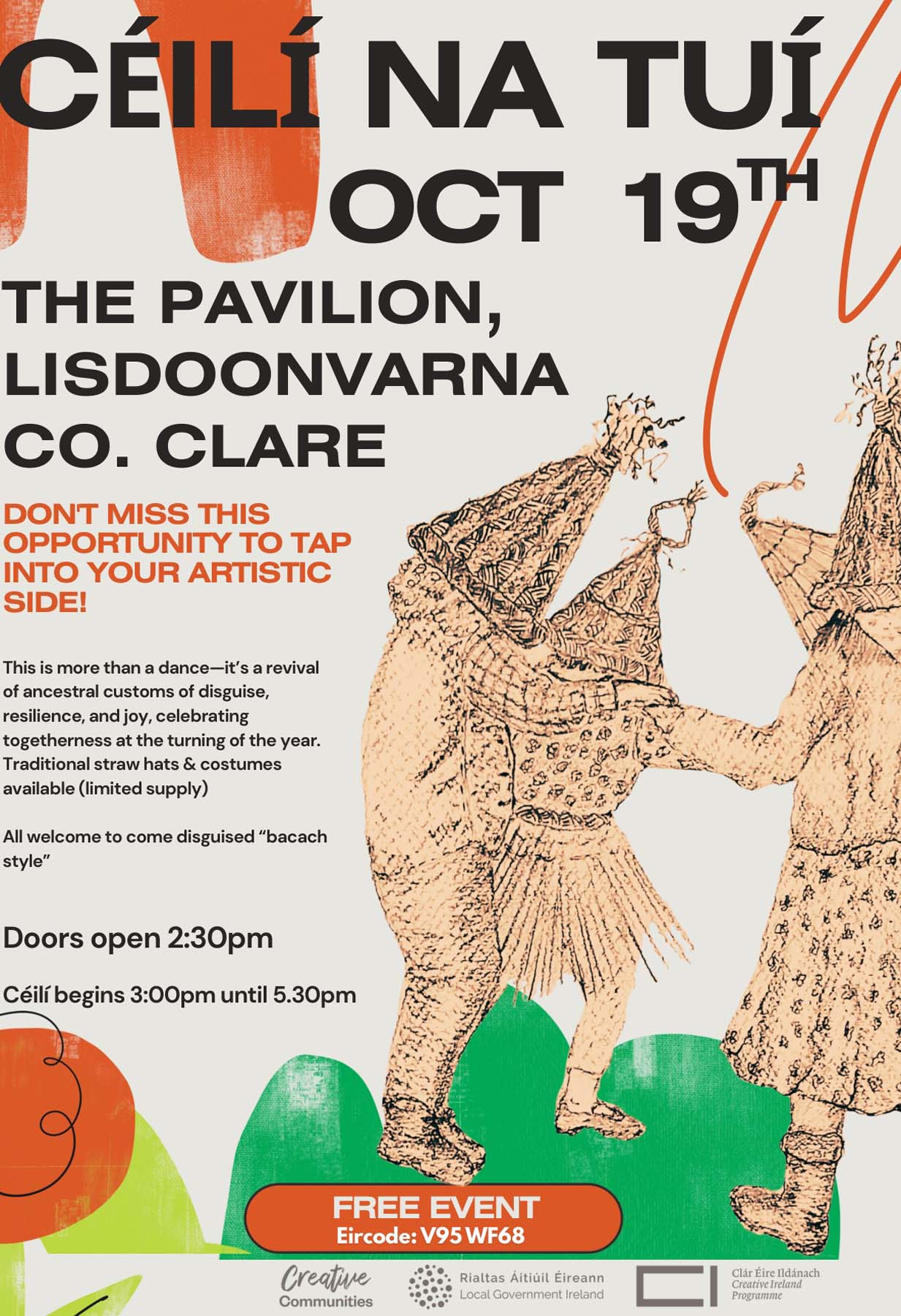 Rooted in the Strawboys and Mummers traditions, Bacach responds to a local desire in County Clare to keep these customs alive when the straw hats central to the practice had all but disappeared. The last local maker had died, cereal growing had almost vanished. Two sources gave the straw to start the revival and from these beginnings grows a living, sensory inquiry into making, masking, and coming together, shaped by the community itself.