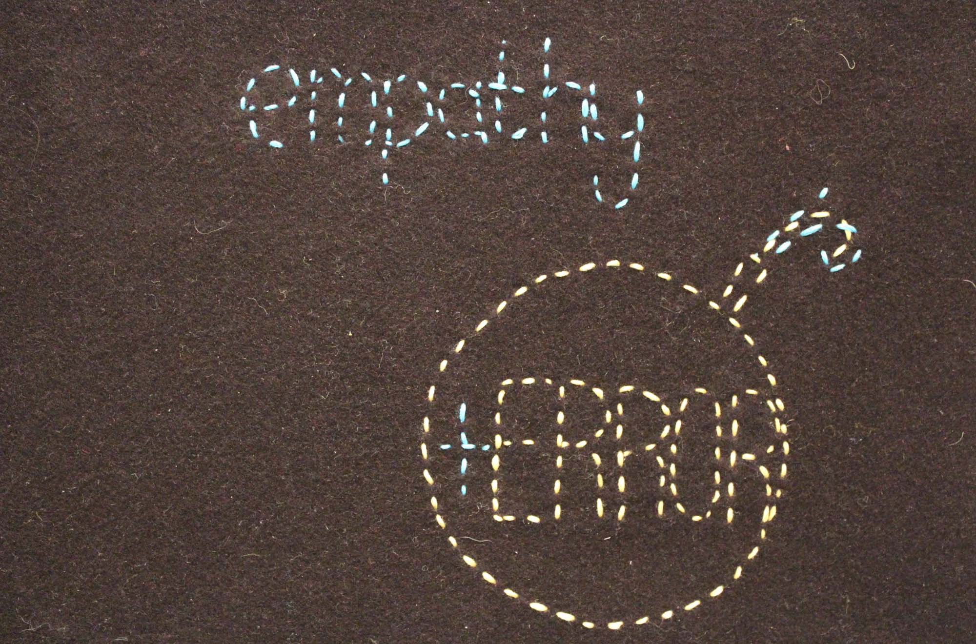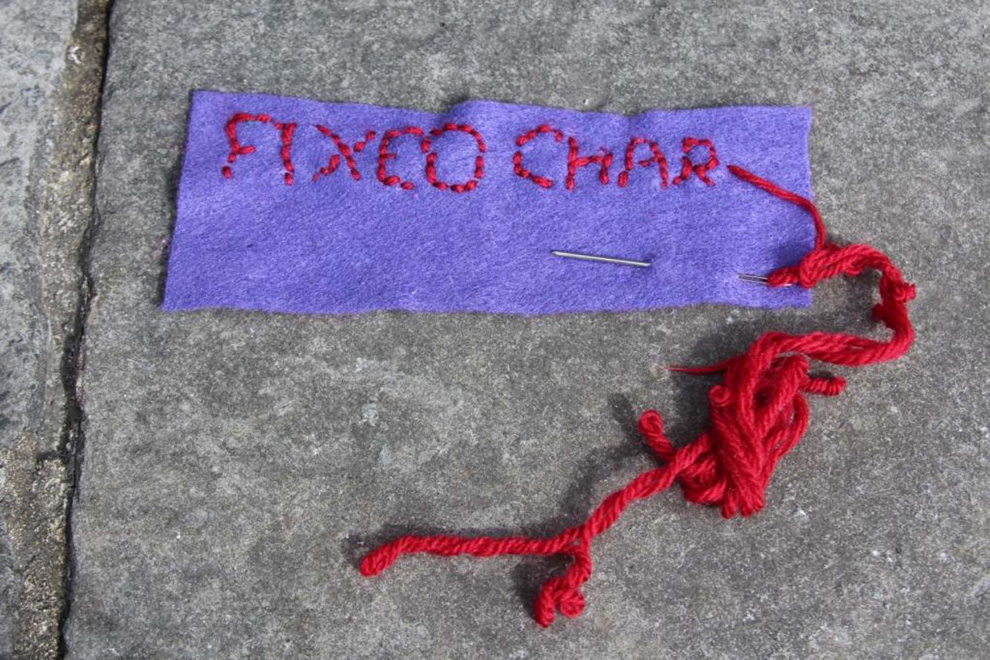 - Fiona brought an envelope marked “get the point not the points.” Inside was felt, a darning needle, and thread. She joined in stitching the phrase “fixed charge penalty notice,” reframing bureaucratic language through making.