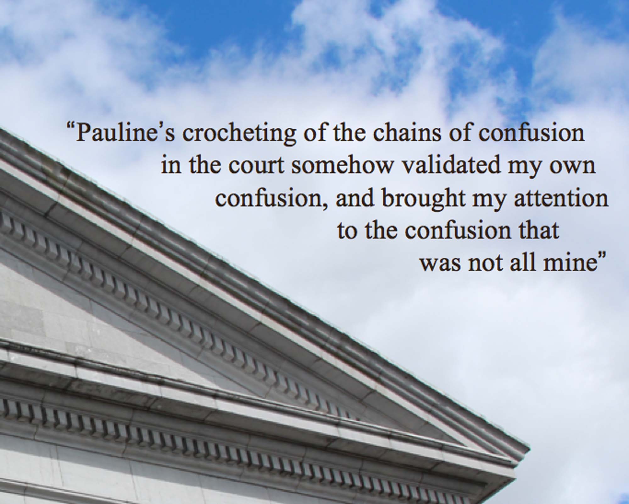 The matter was eventually struck out, yet the real outcome was collective: refusing worry, choosing honesty, and making space for presence. Together, a subtle new thread was knitted into the court system.