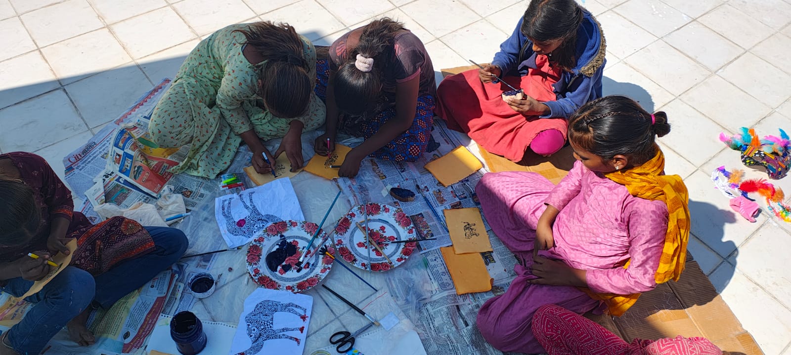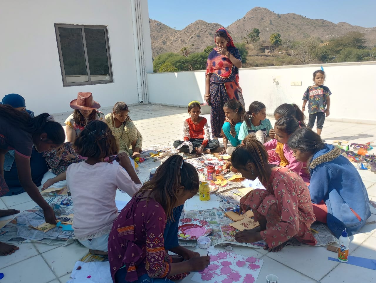 The Gorella Girls is an ongoing collaboration between Irish artist Maeve Collins, curator Farheen Sheilk, and a group of young women from Gorella Village, Udaipur. Founded during Maeve’s 2025 residency at Bougainvillea Artist Retreat, the collective continues to meet weekly, exploring creativity, identity, and community through shared artistic practice.