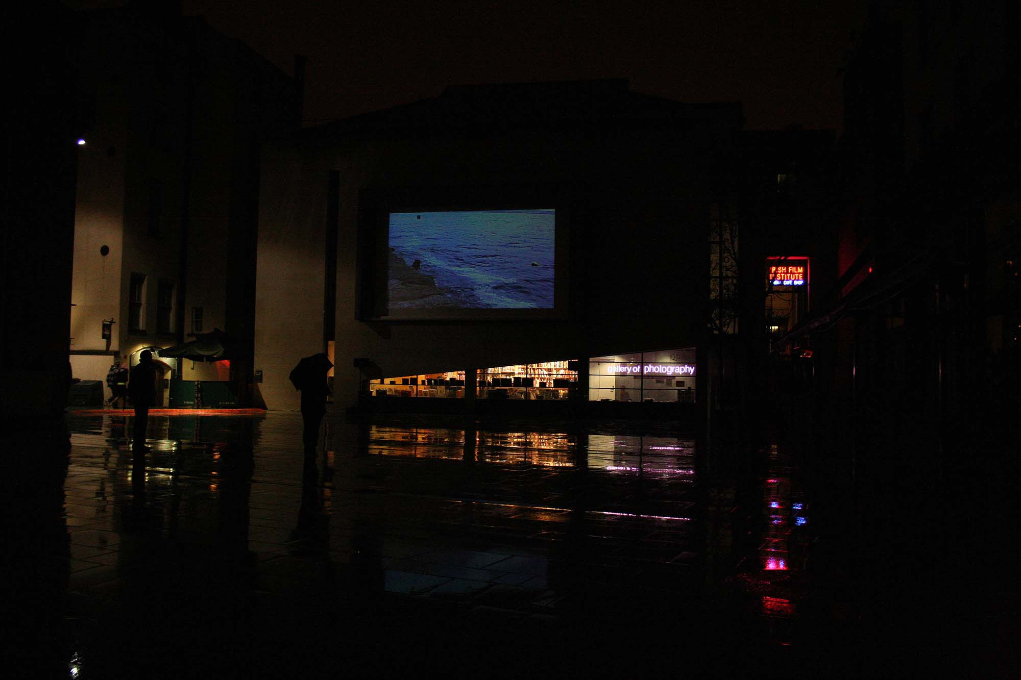 The journey ended in Dublin, at the Winter Solstice, where Collins brought the rhythm of the tide into Meeting House Square. Between low tide and high tide, the sound of the sea filled the space, merging with the pulse of the city. At dusk, a four-minute film of the incoming tide at Liscannor Bay was projected beneath a clock that kept its own time. This alignment of sea, sun, and city drew a line back to the coast — closing the circle of the work while extending its resonance infinitely outward.