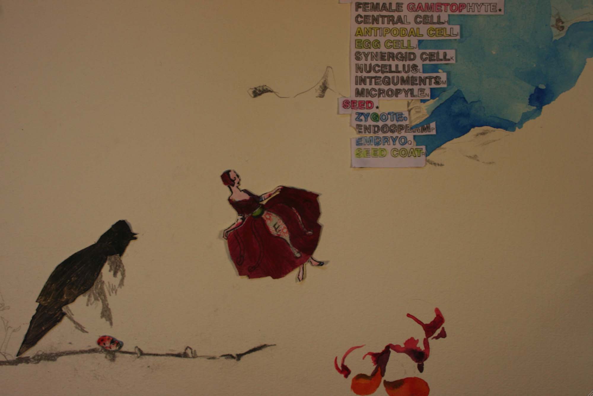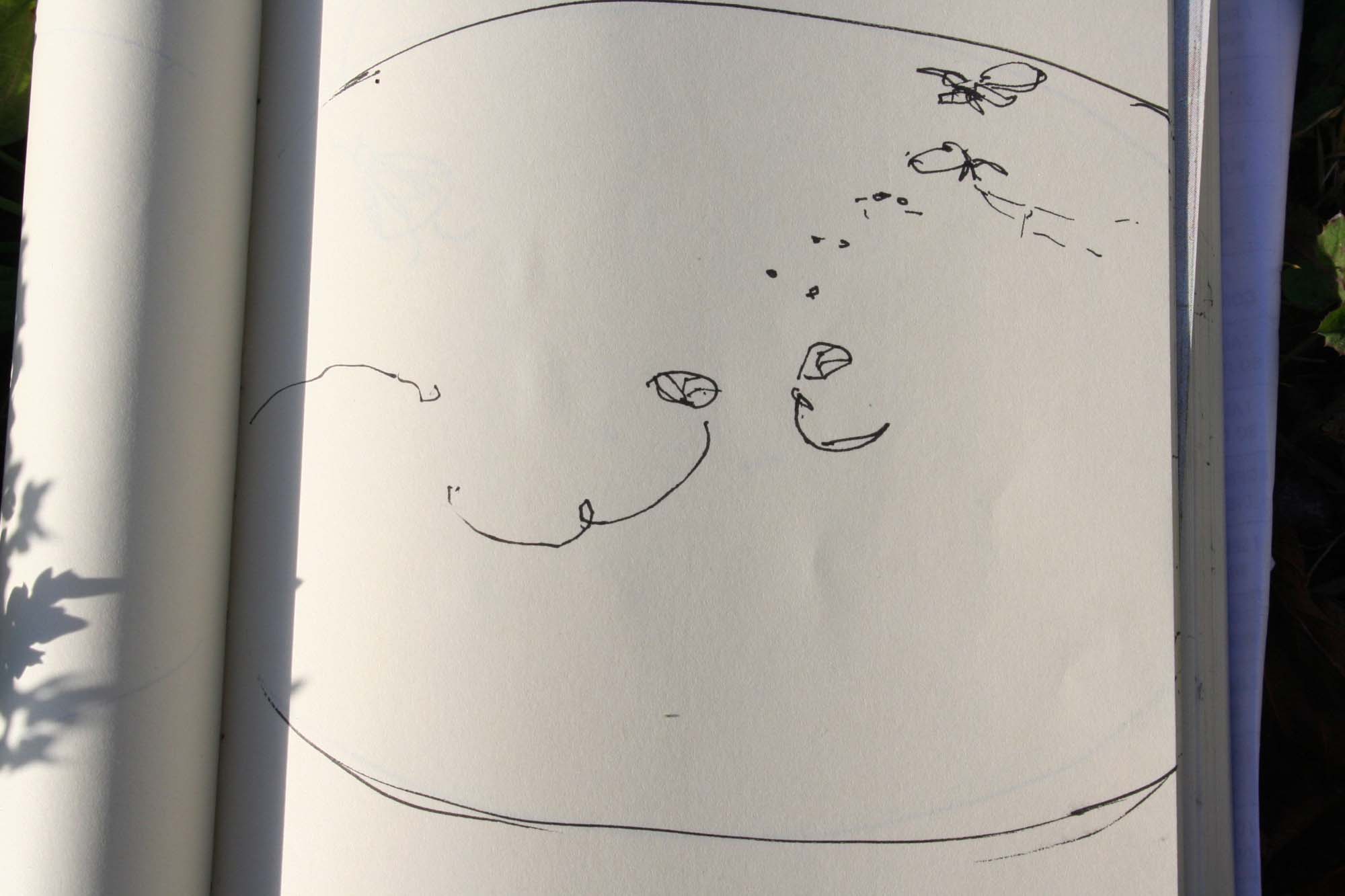 Her approach during this period combined observation, conversation, filming, planting, cutting, logging, and drawing. Each method functioned as a way of attending to the subtle ecological and cultural layers that make up a place. The work emerging from this enquiry brought together animated drawings, projections, and installations that explored relationships between science, myth, and lived experience.