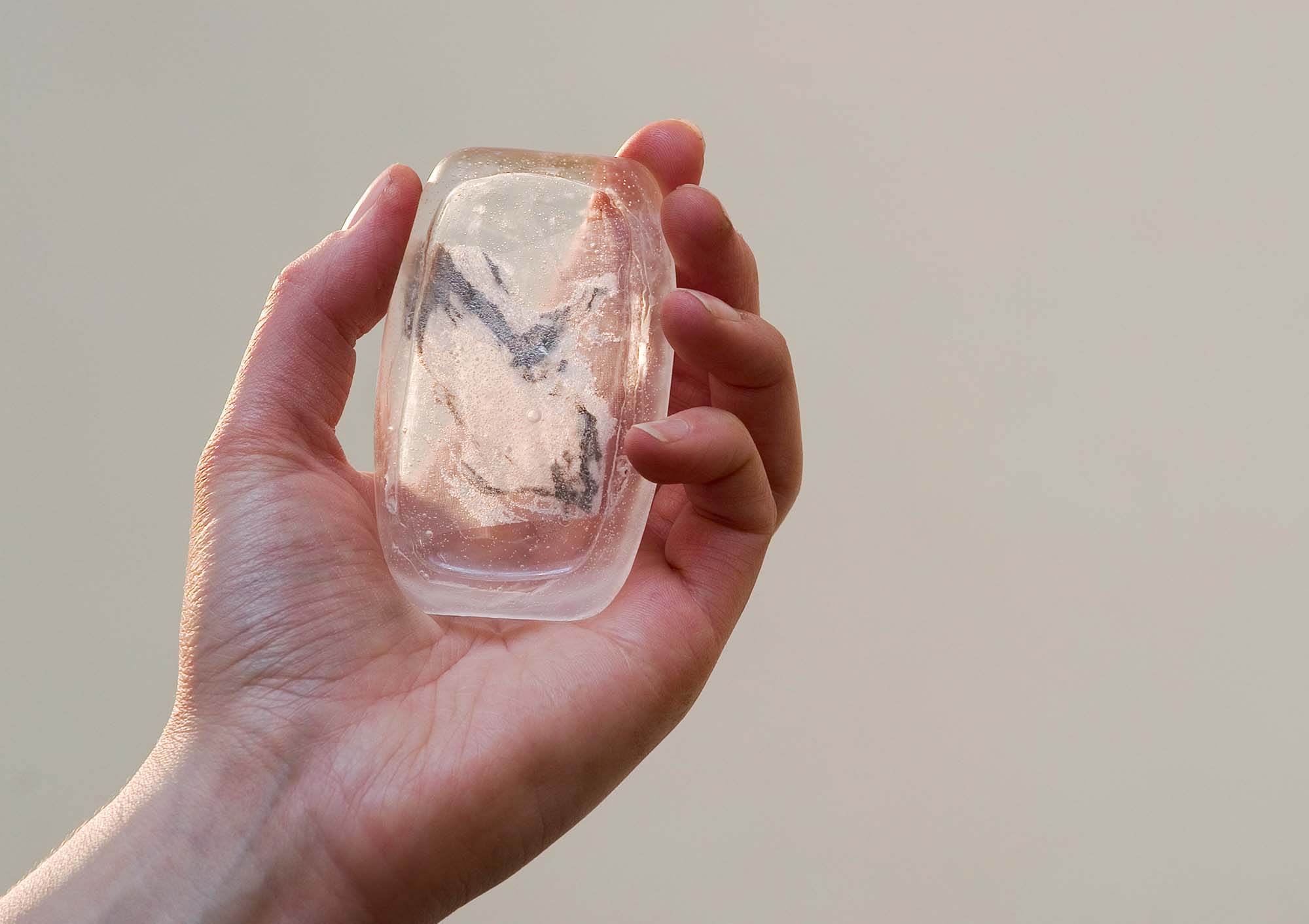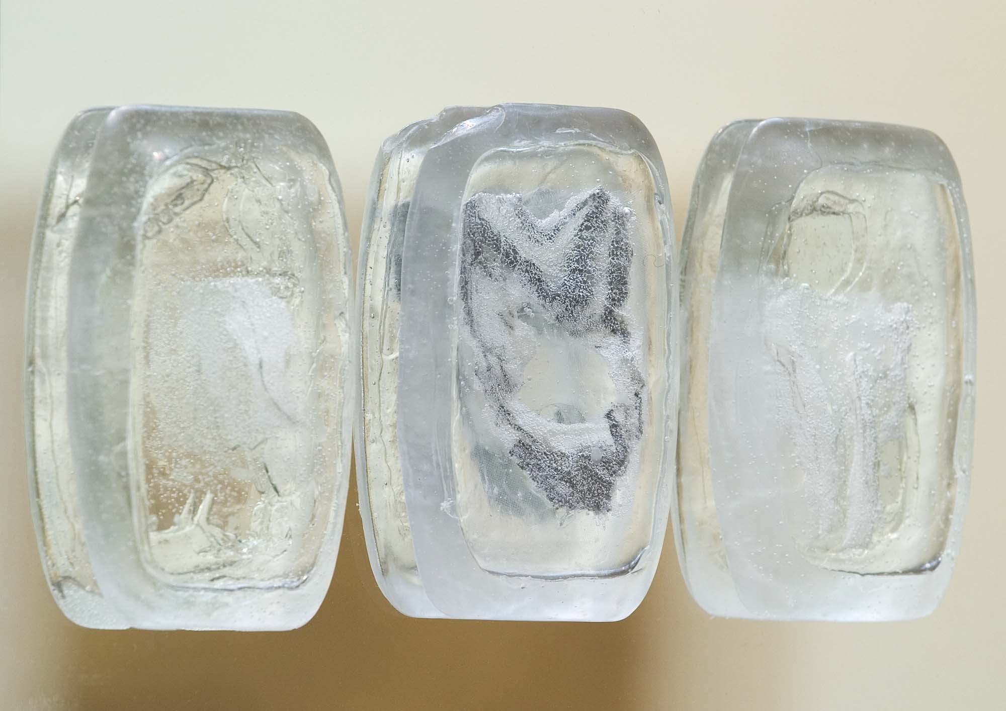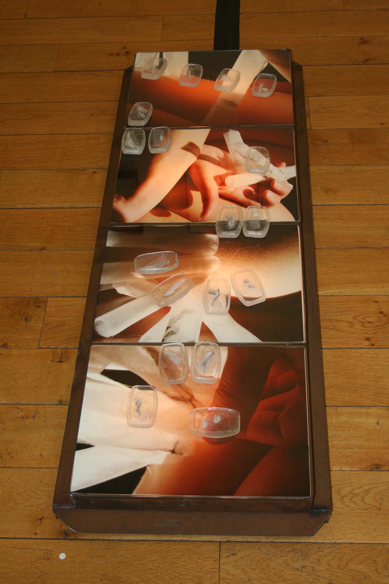 Steel, glass, drawing on voile, clear casting resin