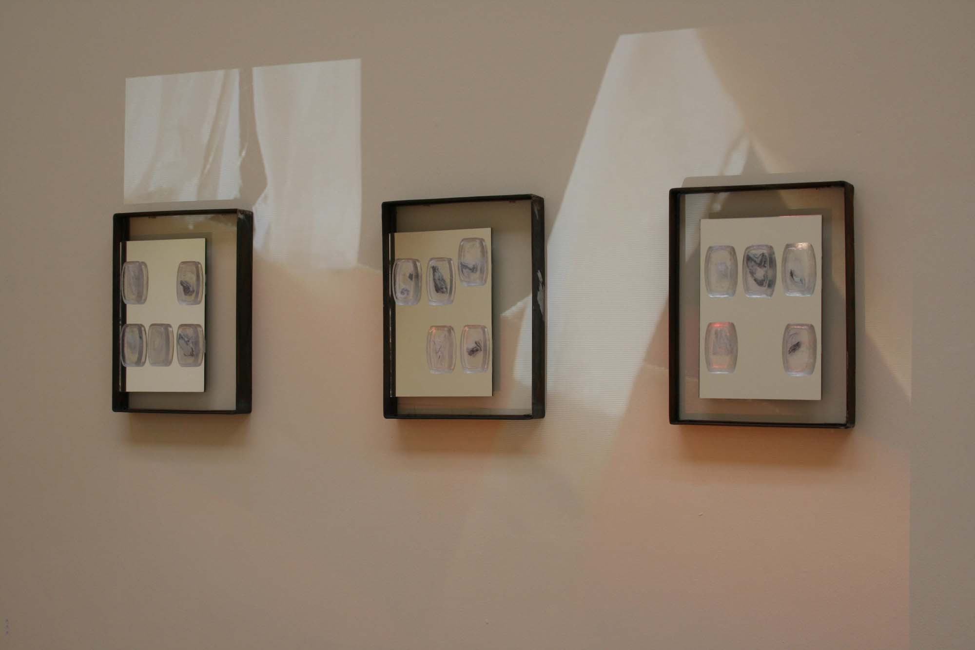 Transparent and translucent materials – including glass, voile, steel, and clear casting resin- were layered to create installations that responded to light and surrounding space. Through these materials the works attempted to hold fleeting traces of bodily perception. Light passing through the surfaces revealed shifting forms and subtle drawings that appeared and disappeared depending on the viewer’s movement and position.